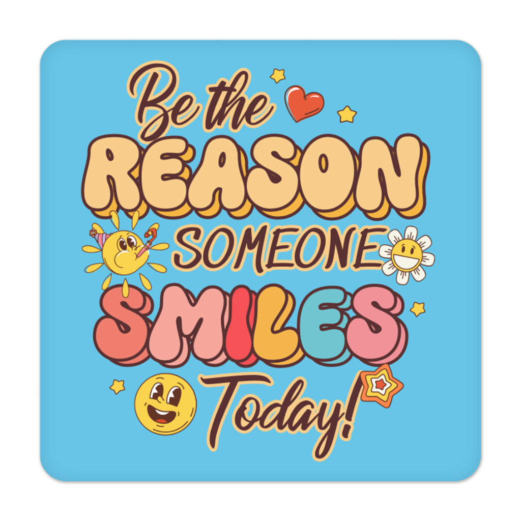Be The Reason Someone Smiles Square Coaster 4-Piece Set – Boho Graphic Coasters for Drinks – Positive Quotes Coffee Tea Mug Coasters