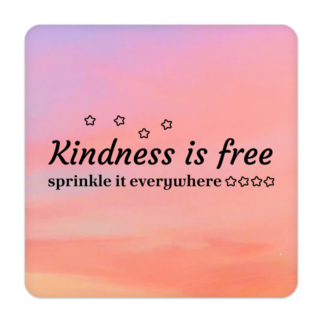 Kindness Is Free Square Coaster 4-Piece Set – Inspirational Quotes Coasters for Drinks – Minimalist Coffee Tea Mug Coasters