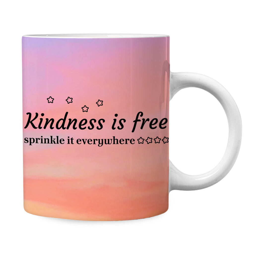 Kindness Is Free 11oz Mug – Minimalist Ceramic Mug – Inspirational Quotes Coffee and Tea Cup