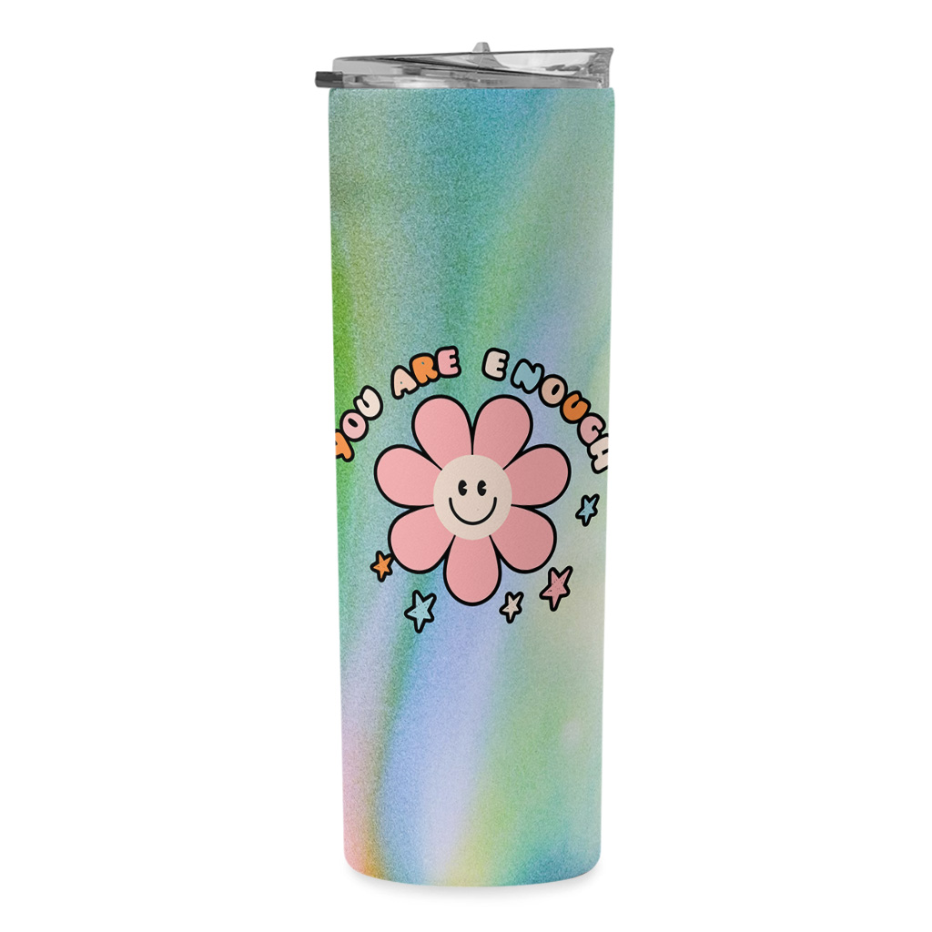 You Are Enough 20oz Skinny Tumbler – Retro Flower Travel Mug – Motivational Stainless Steel Tumbler