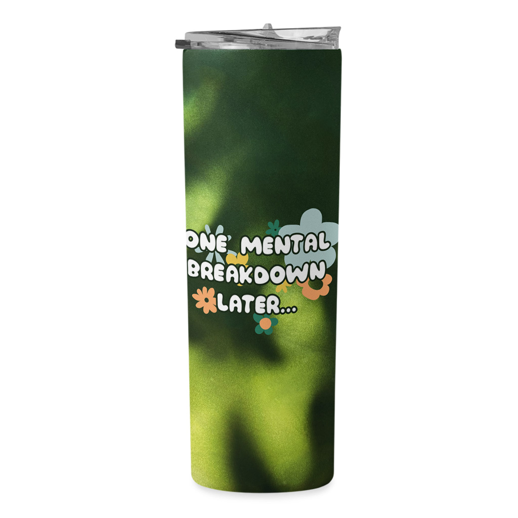 One Mental Breakdown Later 20oz Skinny Tumbler – Anxiety Travel Mug – Funny Therapist Stainless Steel Tumbler