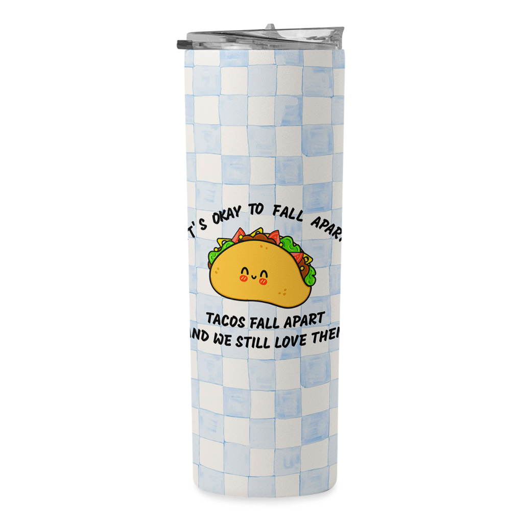 It’s Okay To Fall Apart 20oz Skinny Tumbler – Funny Tacos Travel Mug – Speech Therapy Stainless Steel Tumbler