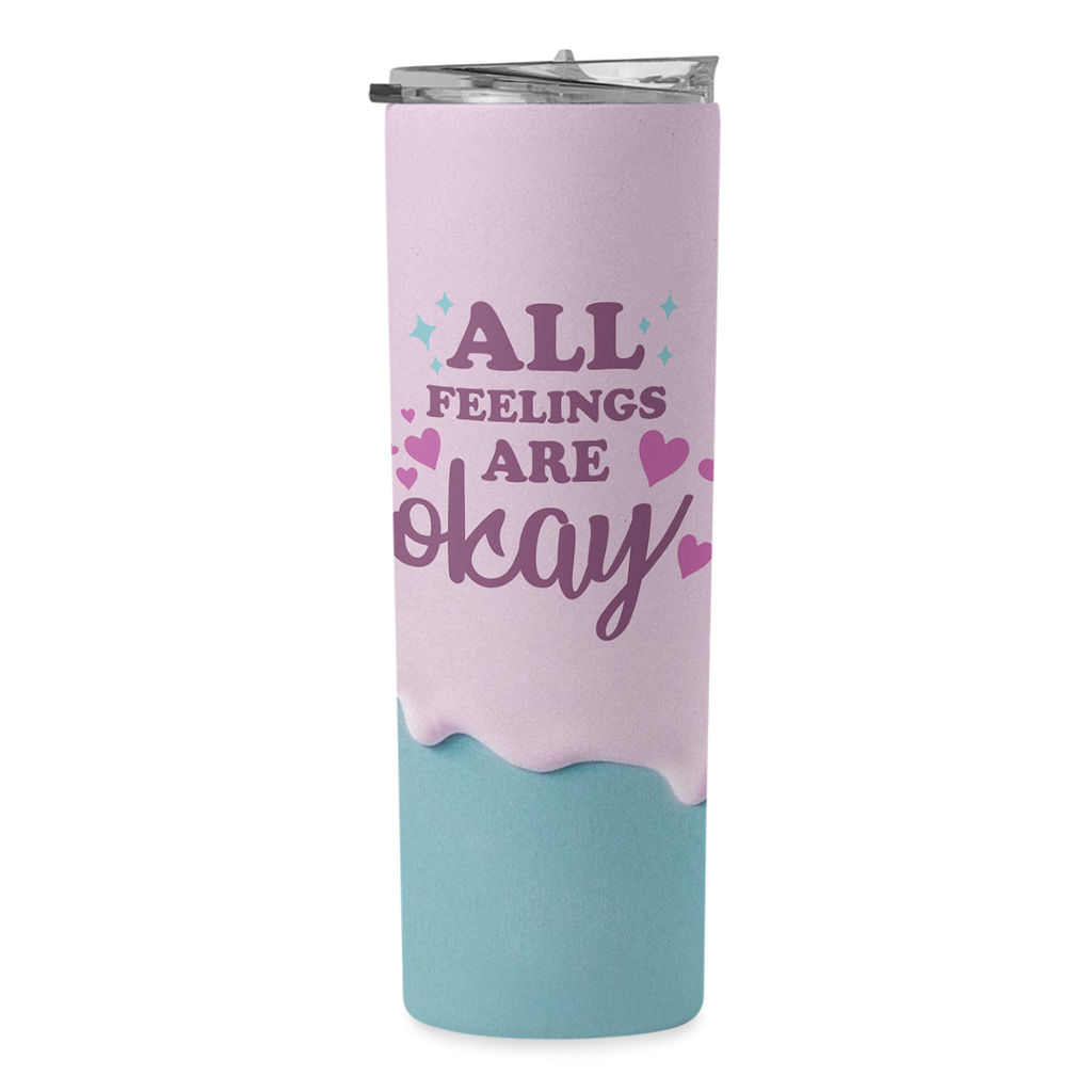 All Feelings Are Okay 20oz Skinny Tumbler – Wellness Travel Mug – Empowering Quote Stainless Steel Tumbler