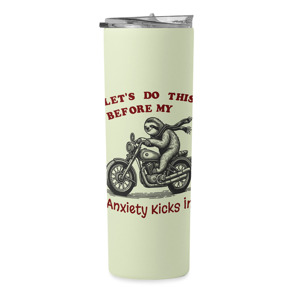 Let’s Do This Before The Anxiety Kicks In 20oz Skinny Tumbler – Funny Sloth Travel Mug – Funny Mental Health Stainless Steel Tumbler