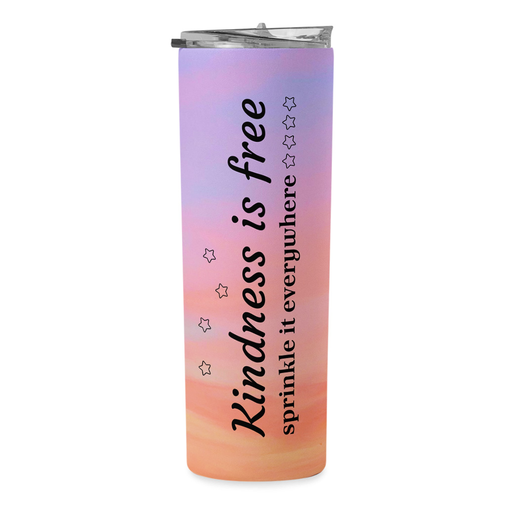 Kindness Is Free 20oz Skinny Tumbler – Minimalist Travel Mug – Inspirational Quotes Stainless Steel Tumbler