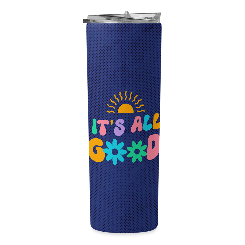 It’s All Good 20oz Skinny Tumbler – Retro Graphic Travel Mug – Positive Vibes Stainless Steel Tumbler