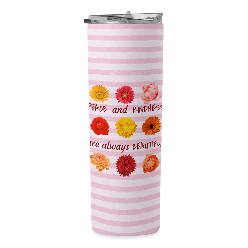 Peace and Kindness Are Always Beautiful 20oz Skinny Tumbler – Floral Travel Mug – Positive Thoughts Stainless Steel Tumbler