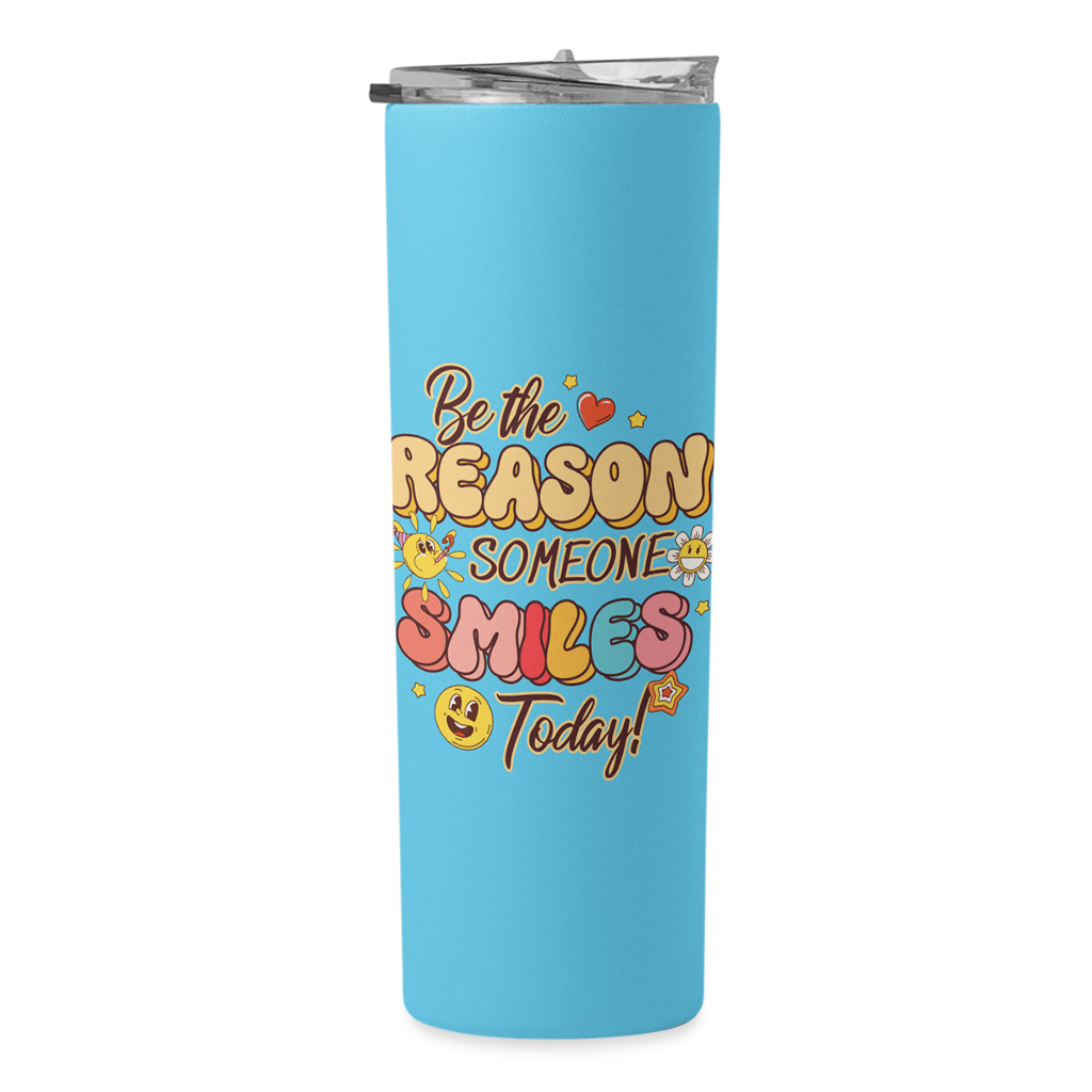 Be The Reason Someone Smiles 20oz Skinny Tumbler – Positive Quotes Travel Mug – Boho Graphic Stainless Steel Tumbler