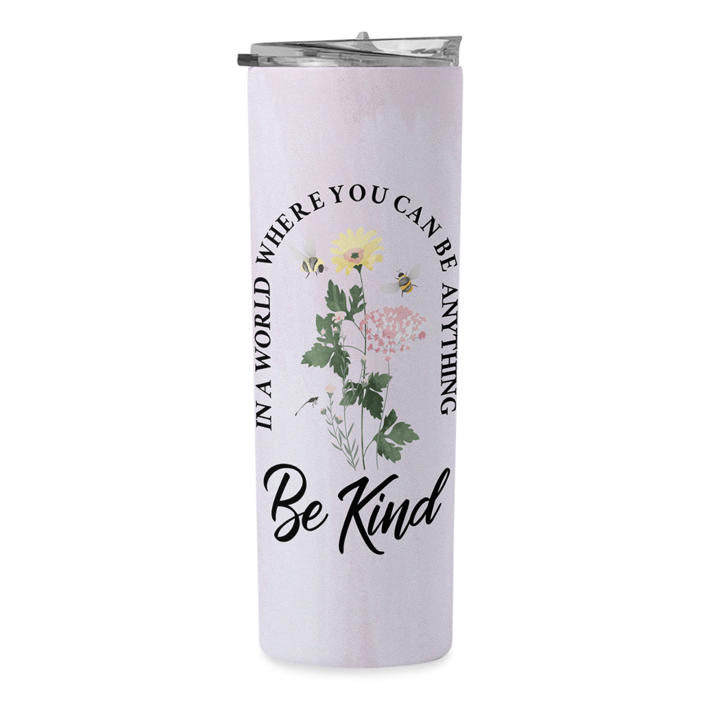 In A World Where You Can Be Anything Be Kind 20oz Skinny Tumbler – Cute Flowers Travel Mug – Wildflowers Stainless Steel Tumbler