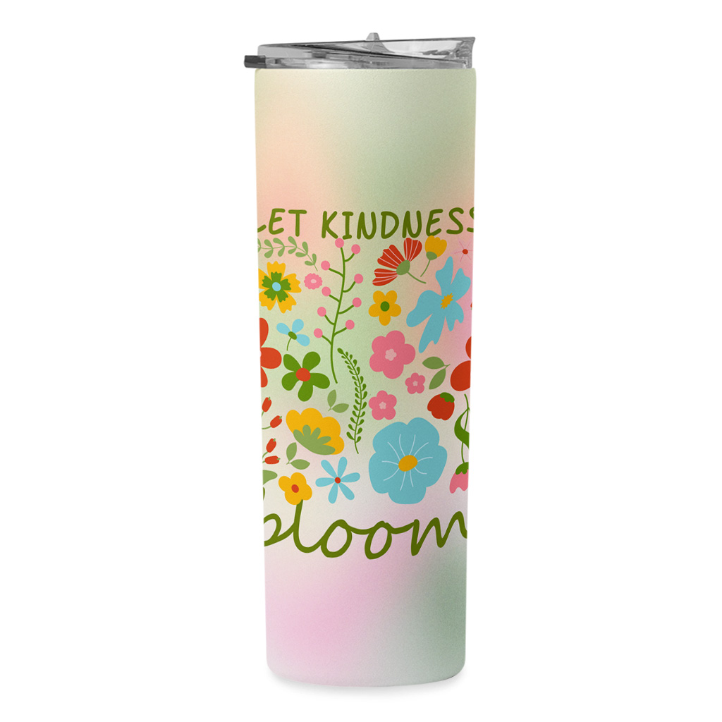 Let Kindness Bloom 20oz Skinny Tumbler – Be Kind Travel Mug – Retro Flowers Stainless Steel Tumbler
