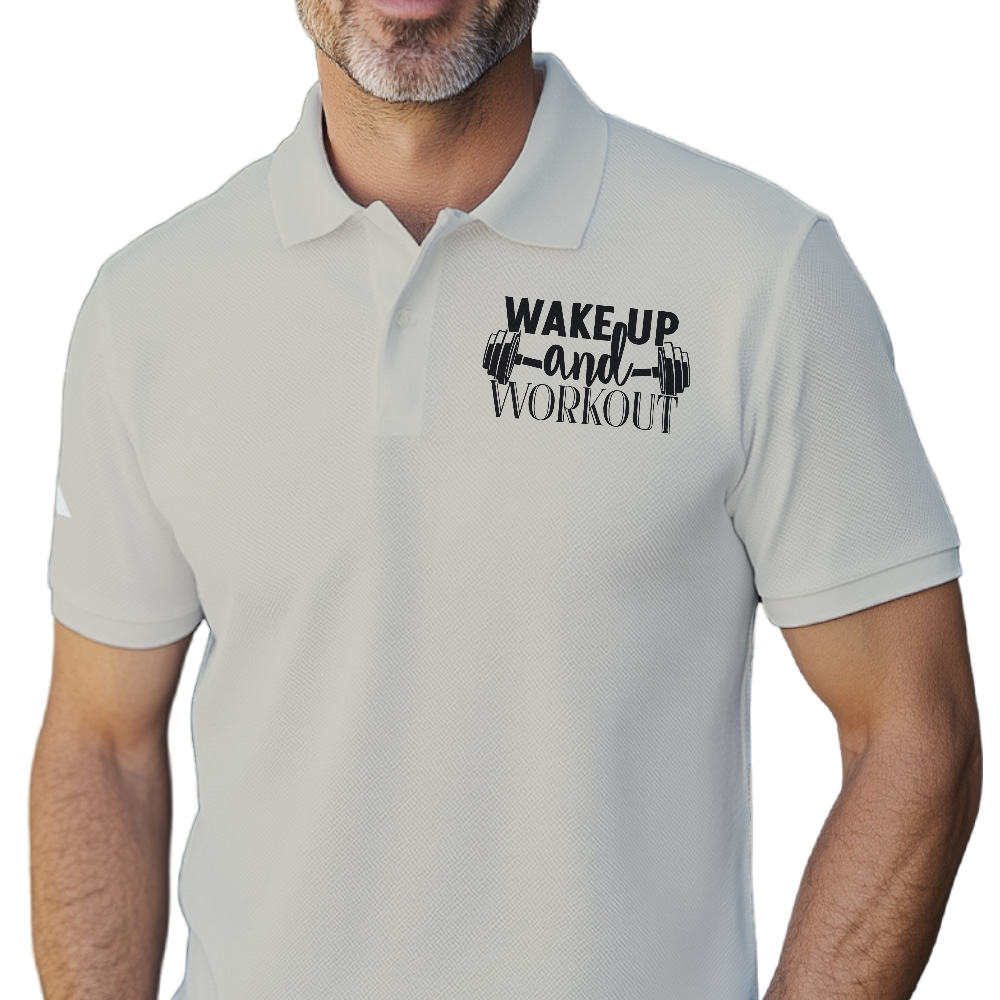 Wake Up and Workout adidas Polo Shirt – Personal Trainer Short Sleeve Tactical Shirts – Fitness Lightweight Golf Shirts