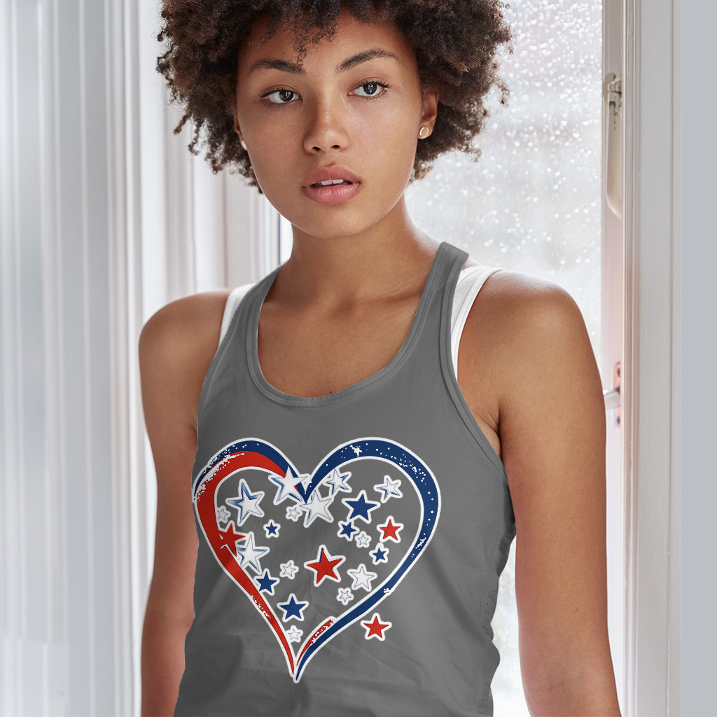 Red White Blue Heart Racerback Tank is no ordinary piece of clothing. Its side-seamed detail and flatlock-finished hems provide a retail fit for clothing that’s true to size.