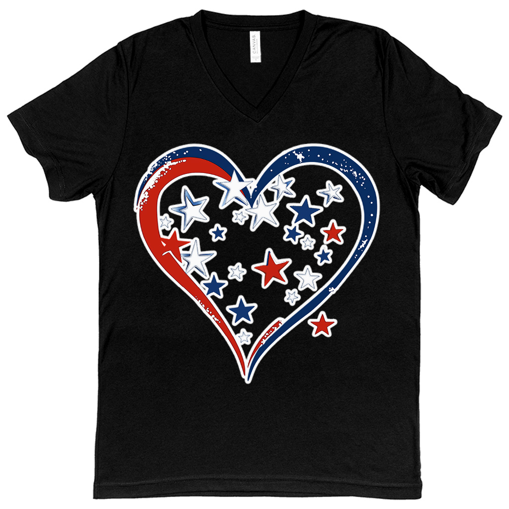 Red White Blue Heart V-Neck T-Shirt