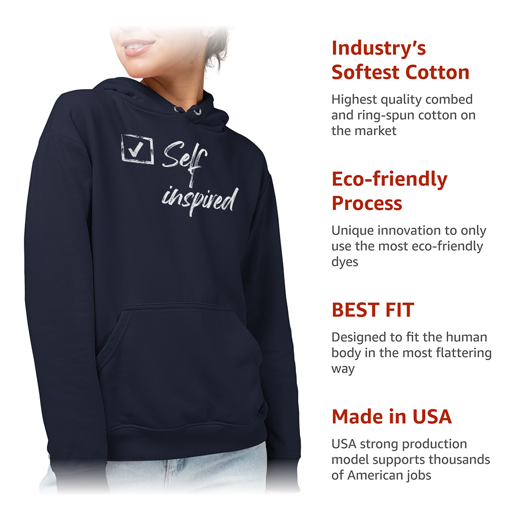 Self Inspired Hoodie is proudly made with 7x less water than average manufacturers, in recycle-friendly facilities that also guarantee zero sweatshop conditions. Self Inspired Hoodie is Designed and printed in California.