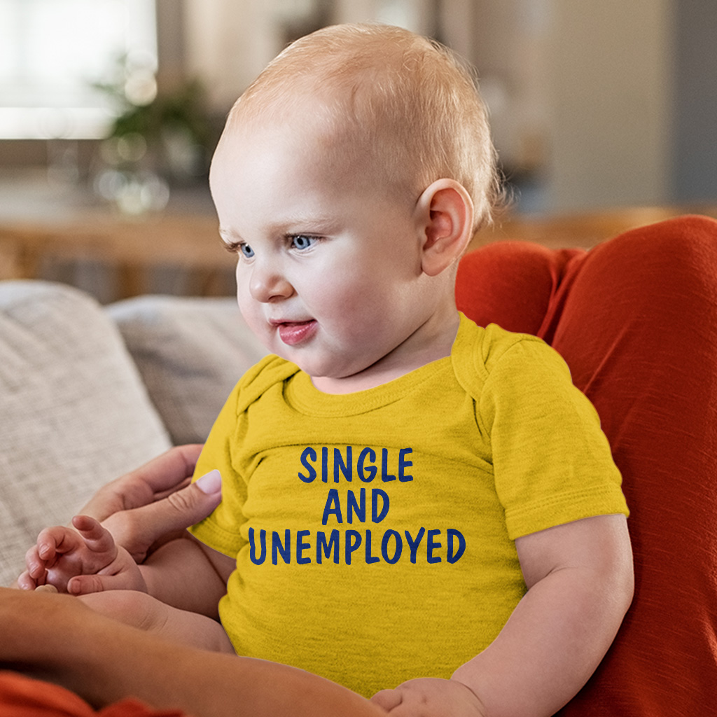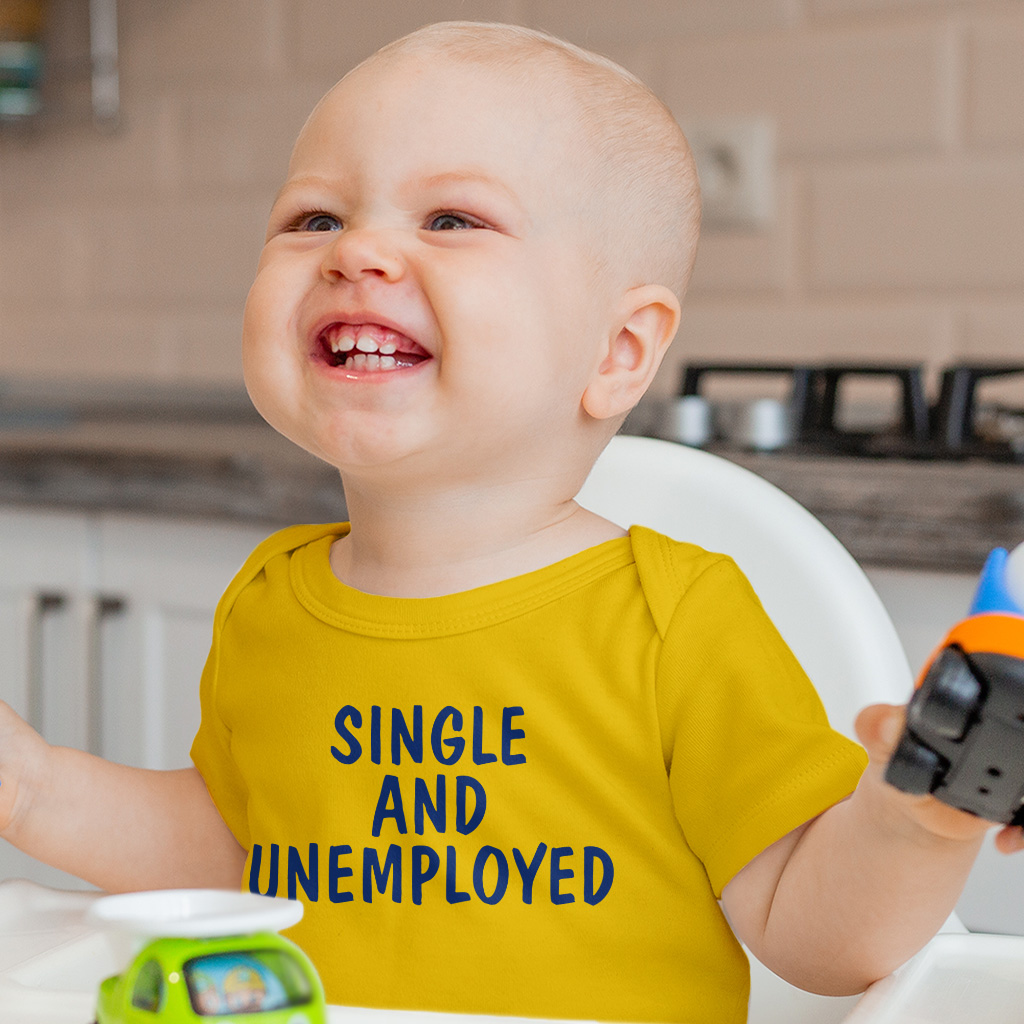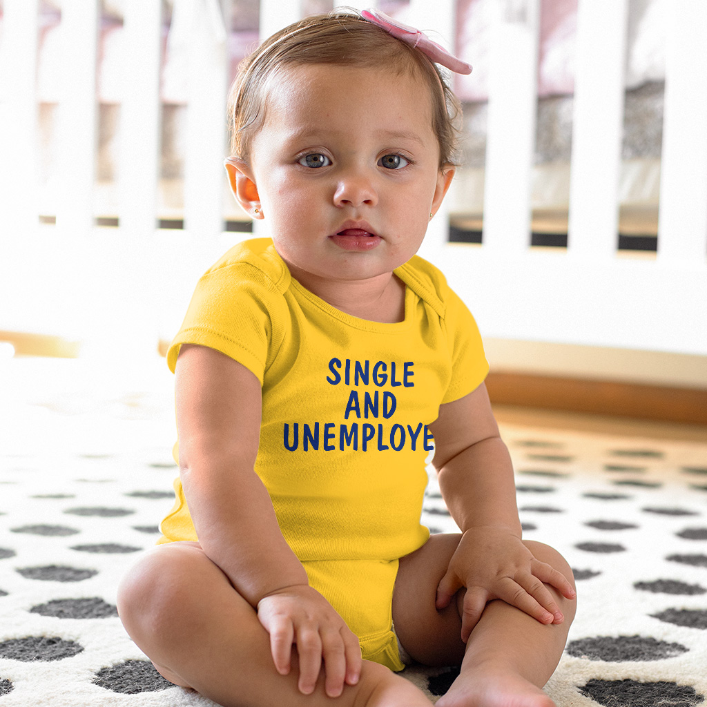 Single and Unemployed Baby Onesie is proudly made with 7x less water than average manufacturers,