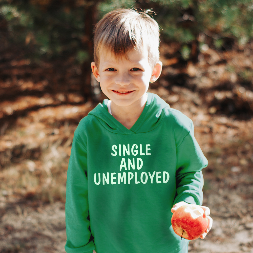 Single and Unemployed Toddler Hoodie is no ordinary piece of clothing. Its top-stitched hood and