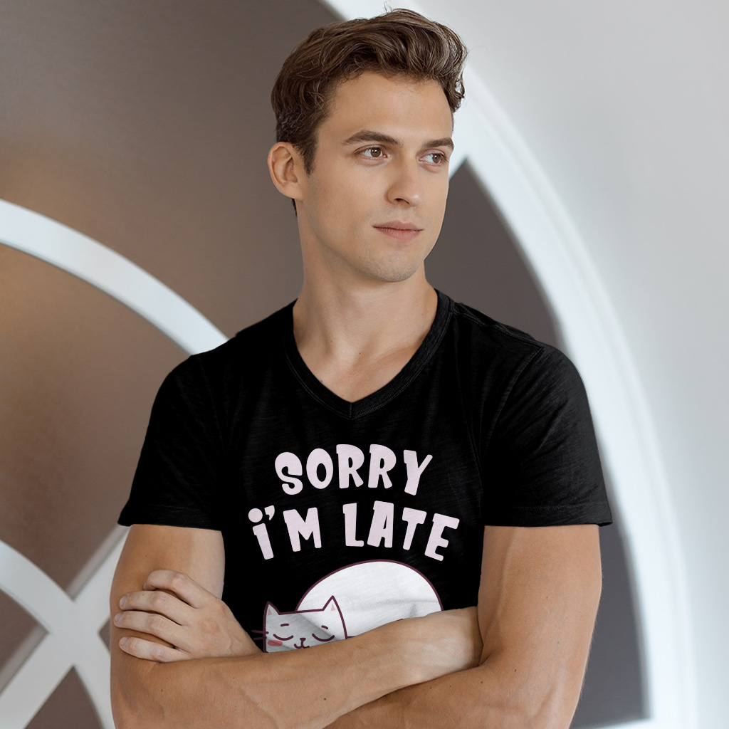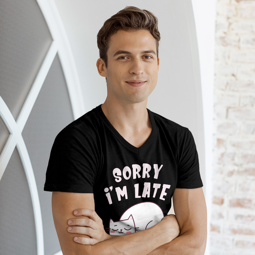 Sorry I’m Late My Cat Was Sitting On Me V-Neck T-Shirt – Cool Cat Basic T-Shirt – Funny Graphic Tee