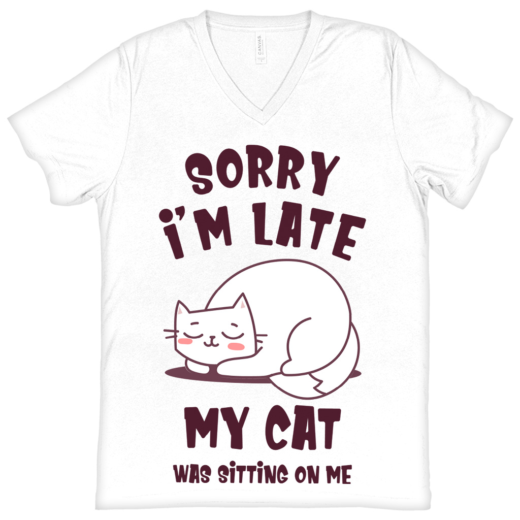 Sorry I’m Late My Cat Was Sitting On Me V-Neck T-Shirt