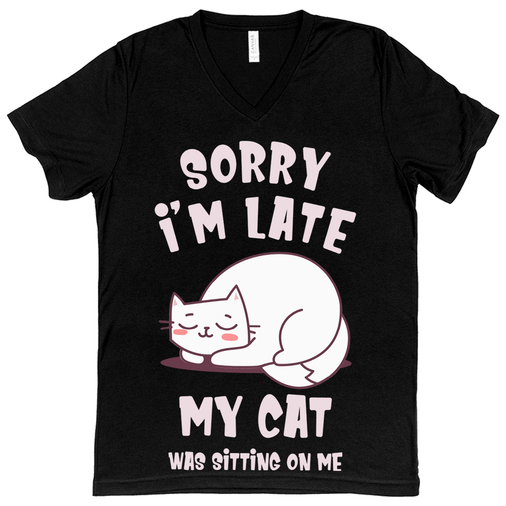 Sorry I’m Late My Cat Was Sitting On Me V-Neck T-Shirt – Cool Cat Basic T-Shirt – Funny Graphic Tee