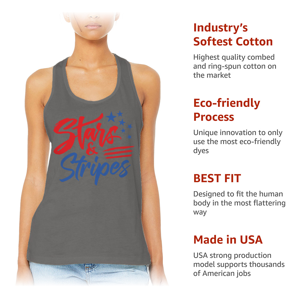 Stars and Stripes Racerback Tank is no ordinary piece of clothing. Its side-seamed detail and flatlock-finished hems provide a retail fit for clothing that’s true to size.