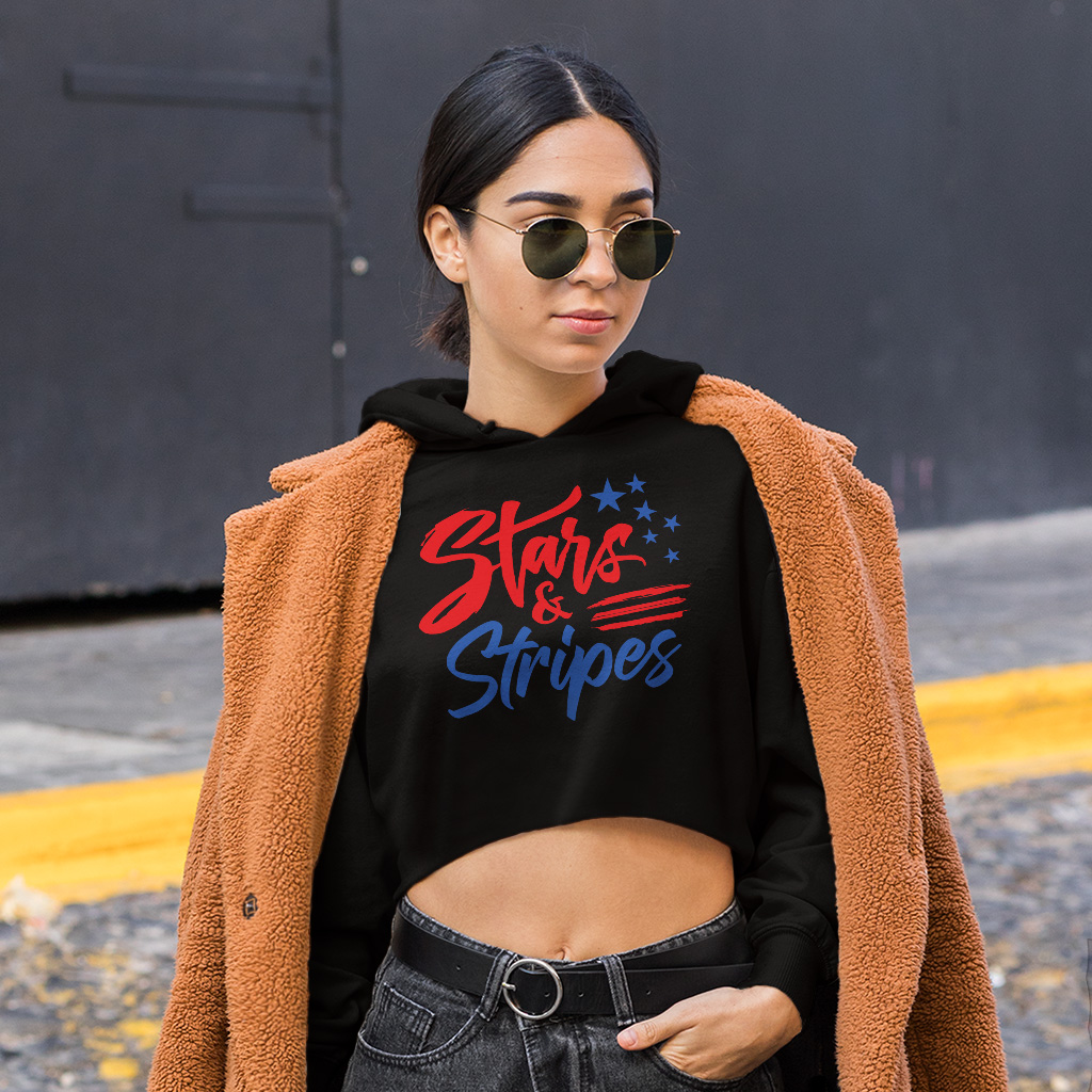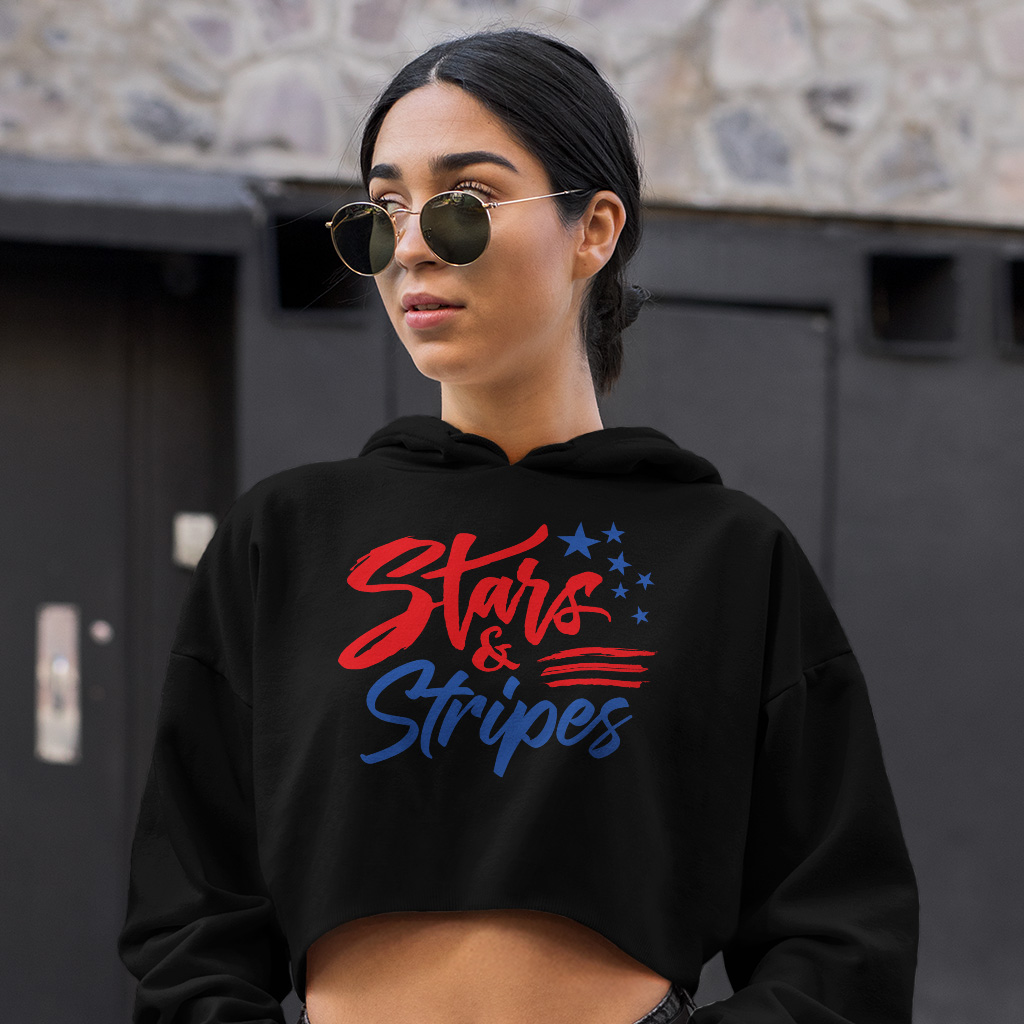 Stars and Stripes Women’s Cropped Hoodie is proudly made with 7x less water than average manufacturers, in recycle-friendly facilities that also guarantee zero sweatshop conditions. Memorial Day Women’s Cropped Hoodie is designed and printed in California.