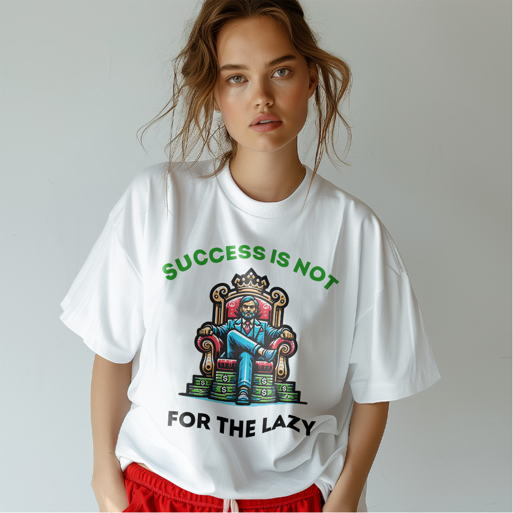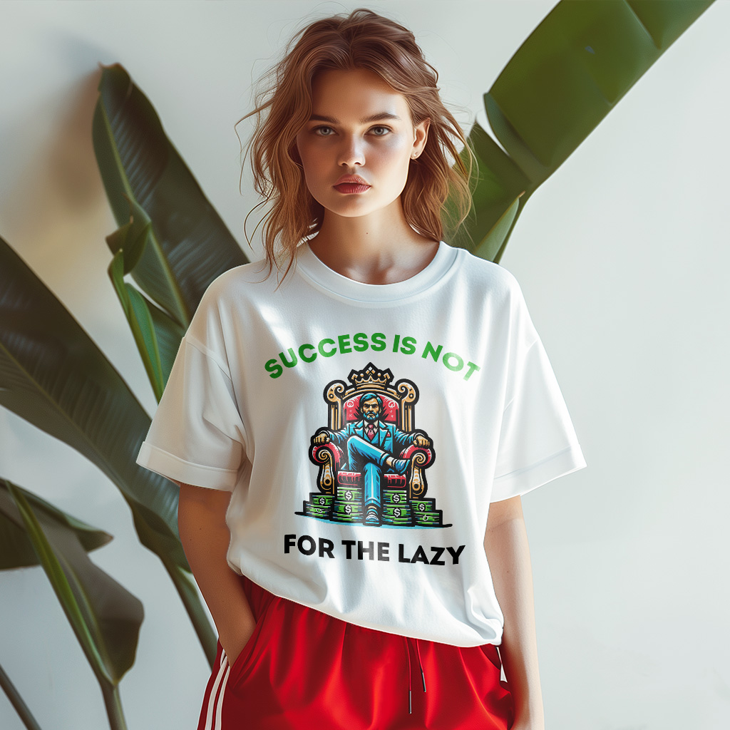 Success Is Not For The Lazy T-Shirt is no ordinary piece of clothing. Its taped neck and shoulders, double-needle sleeve and bottom hems, and quarter-turned construction provide a retail fit for clothing that’s true to size. Success Design Heavy Cotton Tee is Designed and printed in California.