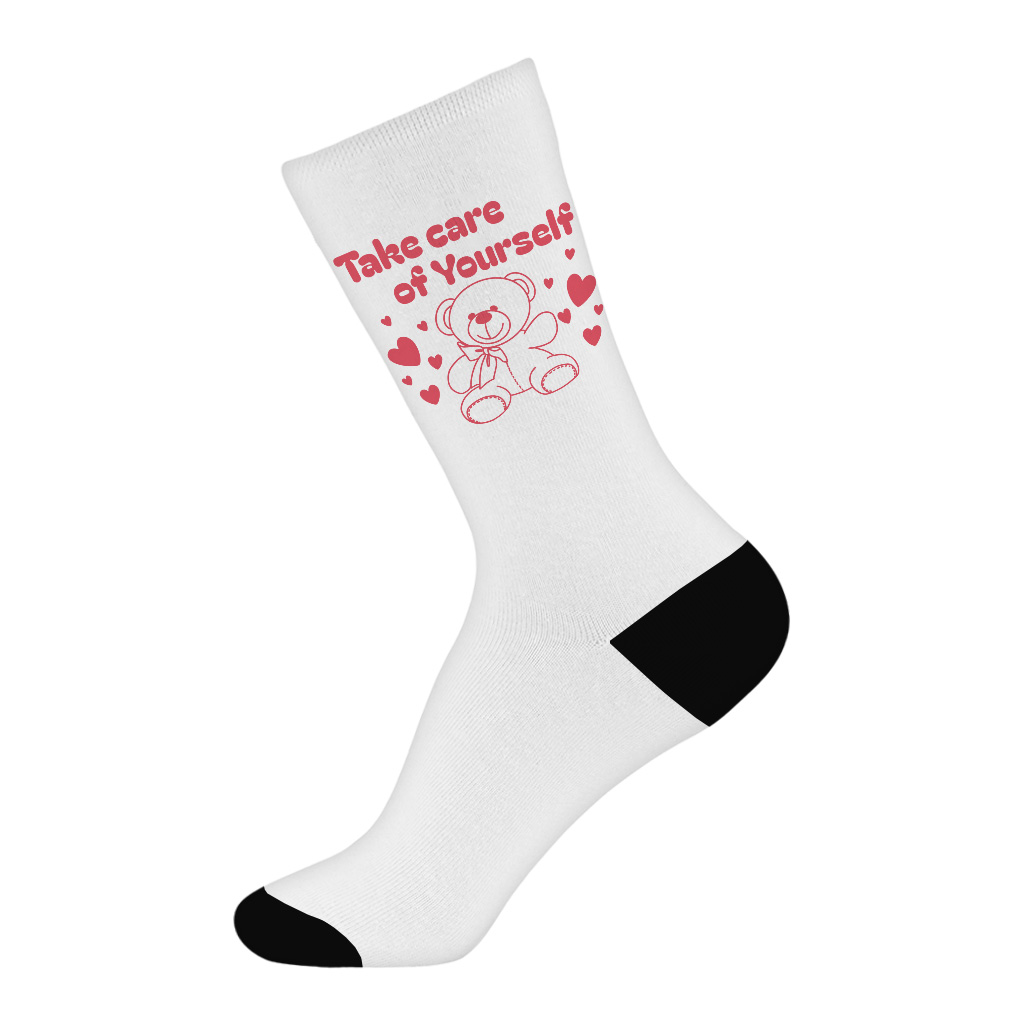 Take Care Of Yourself Unisex Socks Looking for a way to add some personality to your everyday style? Check out Cute Teddy Bear Crew Socks! With a ribbed tube and cushioned bottoms, our socks are sure to make a statement. Plus, they’re super comfortable, so you can wear them all…