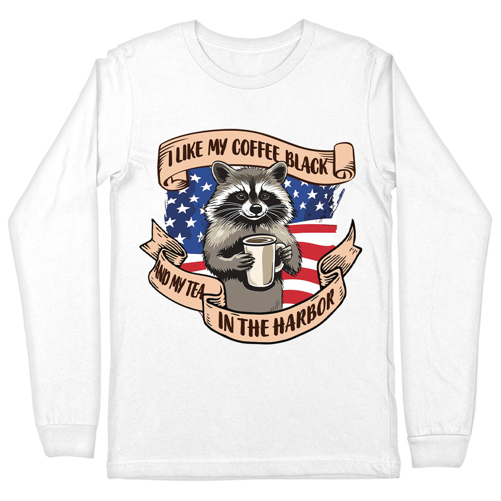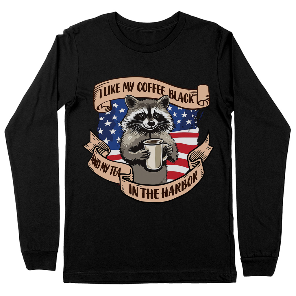 Tea in the Harbor Long Sleeve T-Shirt is proudly made with 7x less water than average manufacturers, in recycle-friendly facilities that also guarantee zero sweatshop conditions. Funny Raccoon T-Shirt is designed and printed in California.