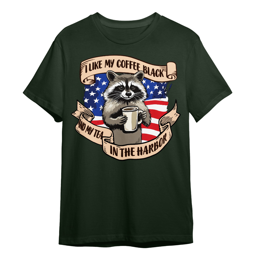 Tea in the Harbor T-Shirt is no ordinary piece of clothing. Its taped neck and shoulders, double-needle sleeve and bottom hems, and quarter-turned construction provide a retail fit for clothing that’s true to size. Funny Raccoon Heavy Cotton Tee is Designed and printed in California.