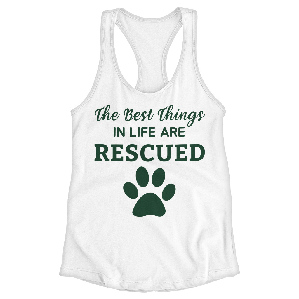 The Best Things in Life Are Rescued Racerback Tank is no ordinary piece of clothing. Its side-seamed detail and flatlock-finished hems provide a retail fit for clothing that’s true to size.