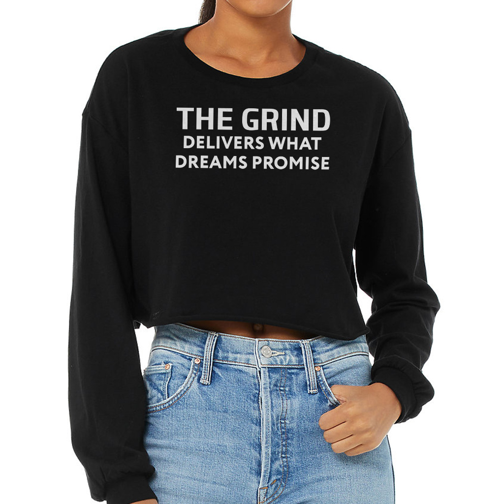 The Grind Delivers What Dreams Promise Cropped Long Sleeve Sweatshirt