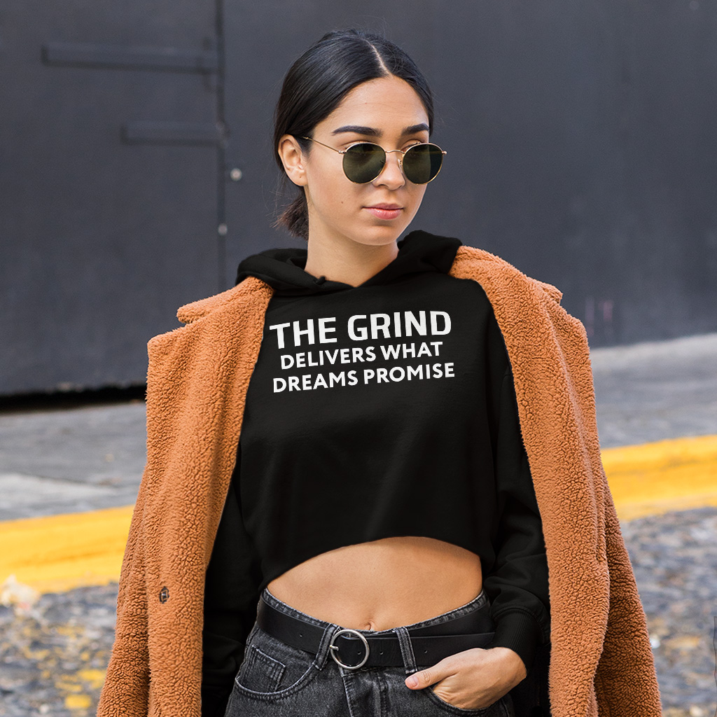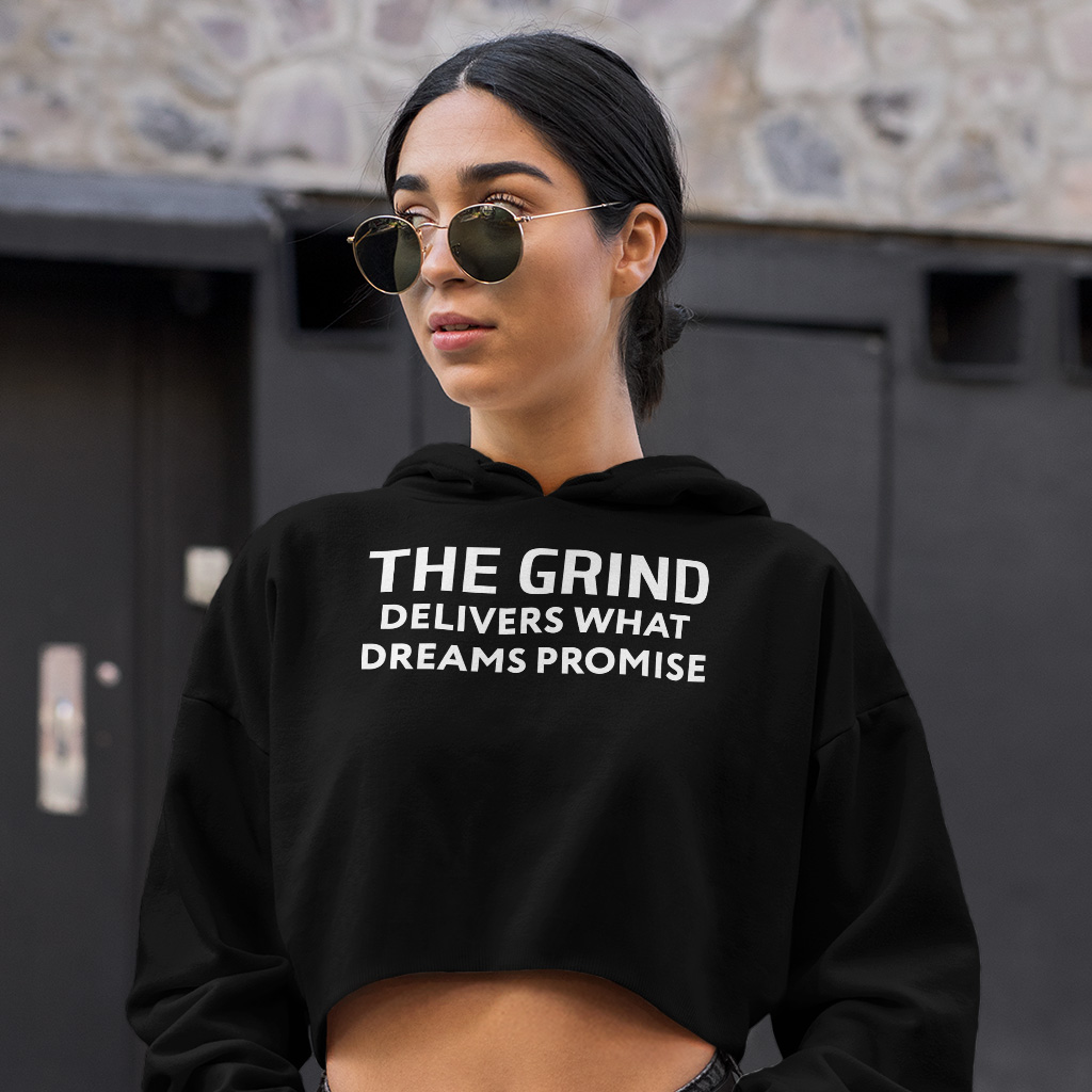 The Grind Delivers What Dreams Promise Women’s Cropped Hoodie