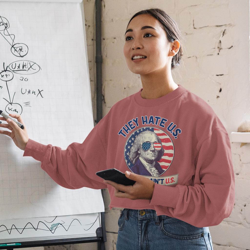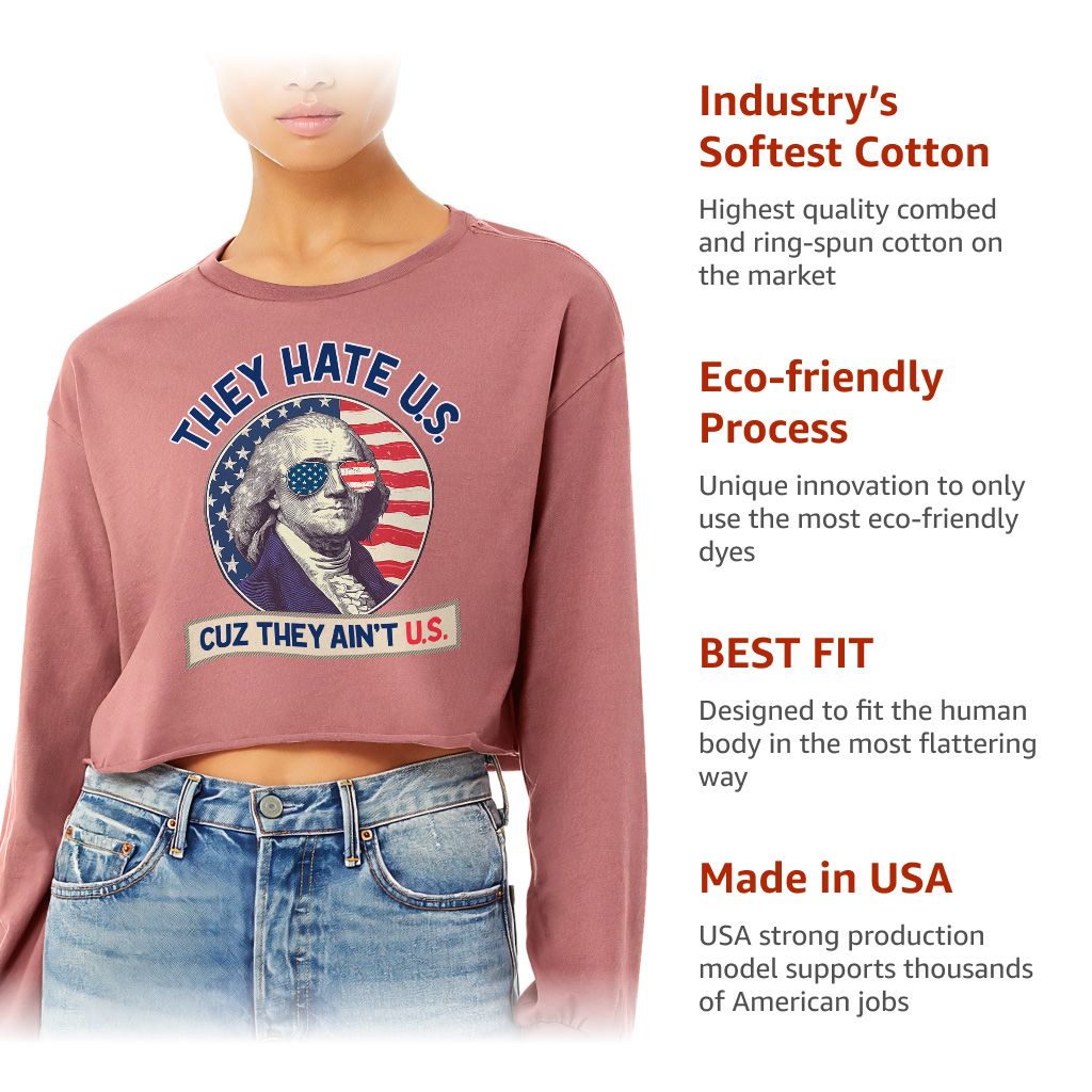 They Hate Us Cuz They Ain’t Us Cropped Long Sleeve Sweatshirt – George Washington Women’s Crop Top – Patriotic Celebration Long Sleeves Pullover