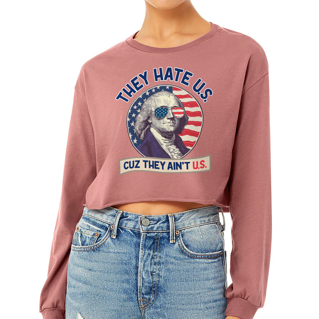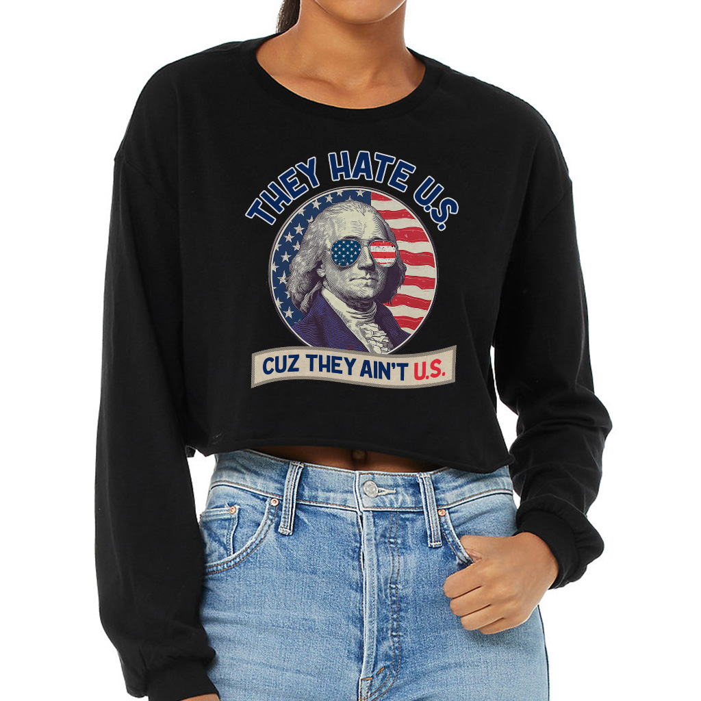 They Hate Us Cuz They Ain’t Us Cropped Long Sleeve Sweatshirt – George Washington Women’s Crop Top – Patriotic Celebration Long Sleeves Pullover