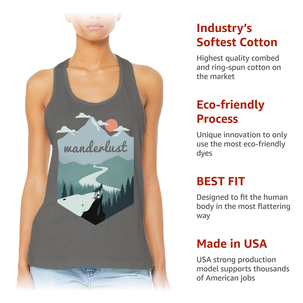 Wanderlust Racerback Tank is no ordinary piece of clothing. Its side-seamed detail and flatlock-finished hems provide a retail fit for clothing that’s true to size.
