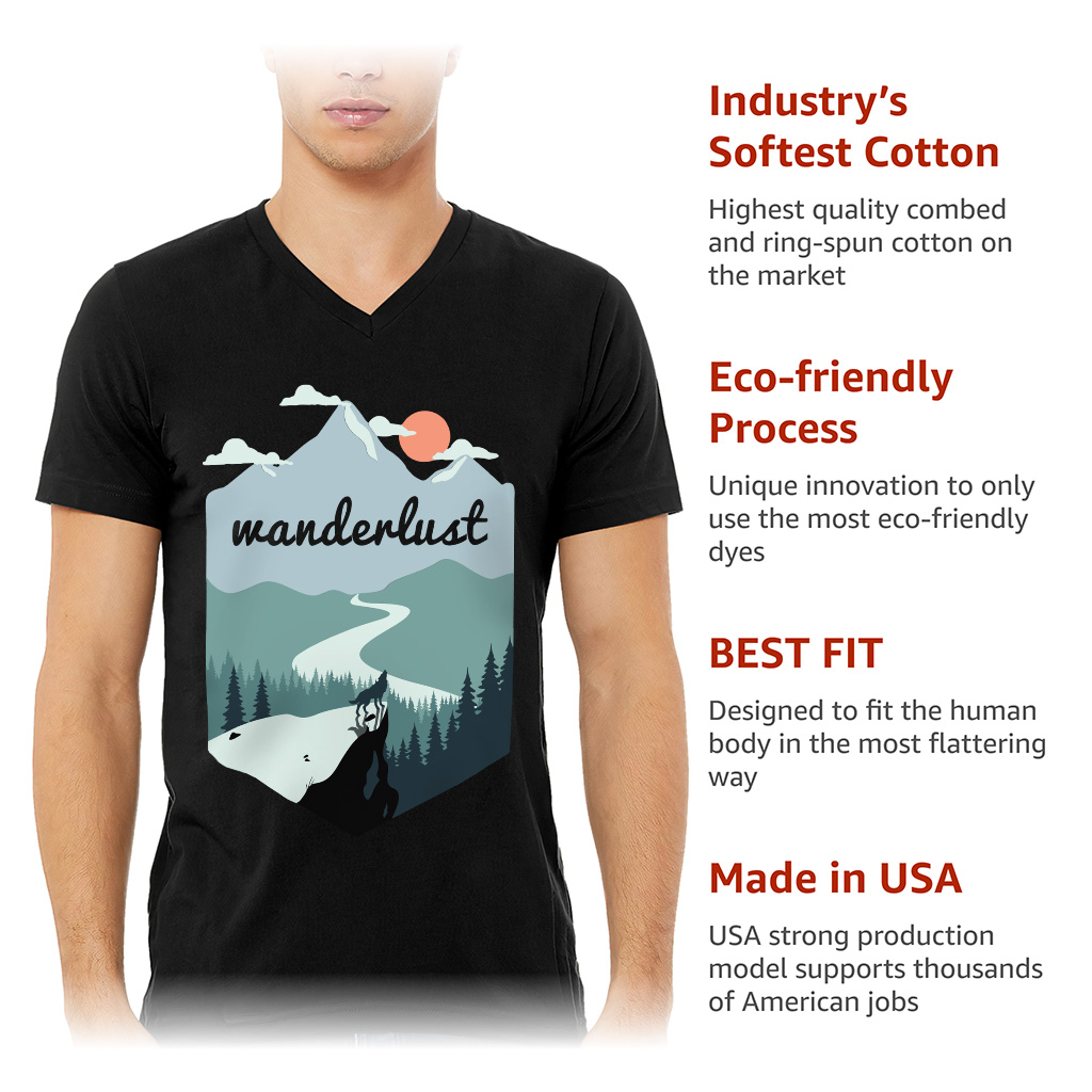 Wanderlust V-Neck T-Shirt is proudly made with 7x less water than average manufacturers, in recycle-friendly facilities that also guarantee zero sweatshop conditions
