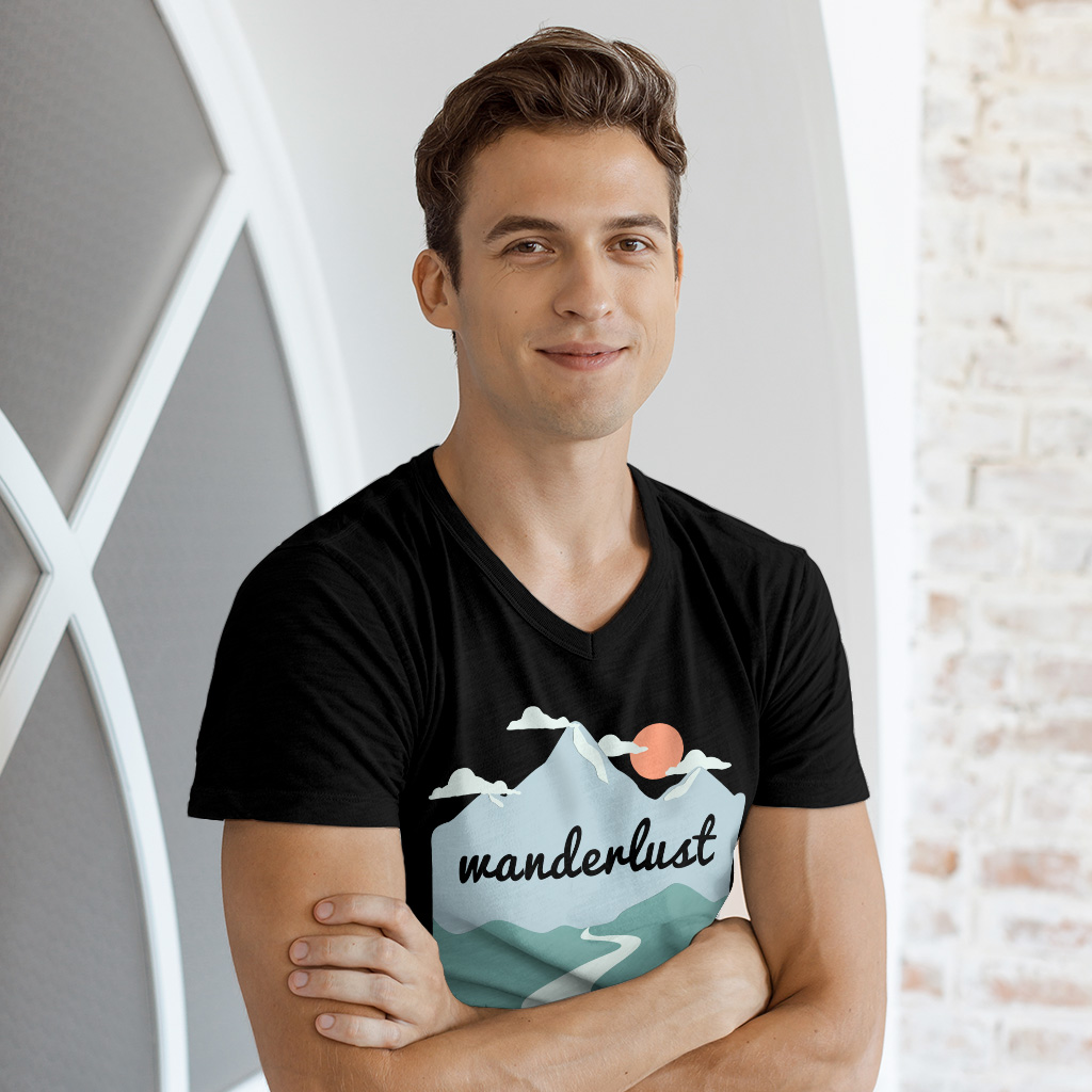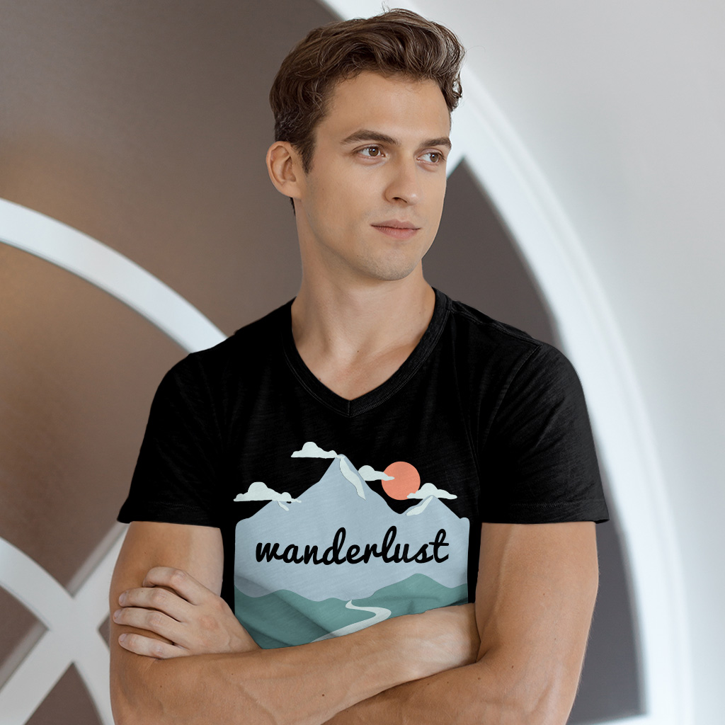 Wanderlust V-Neck T-Shirt – Outdoorsy Basic T-Shirt – Mountains Tee