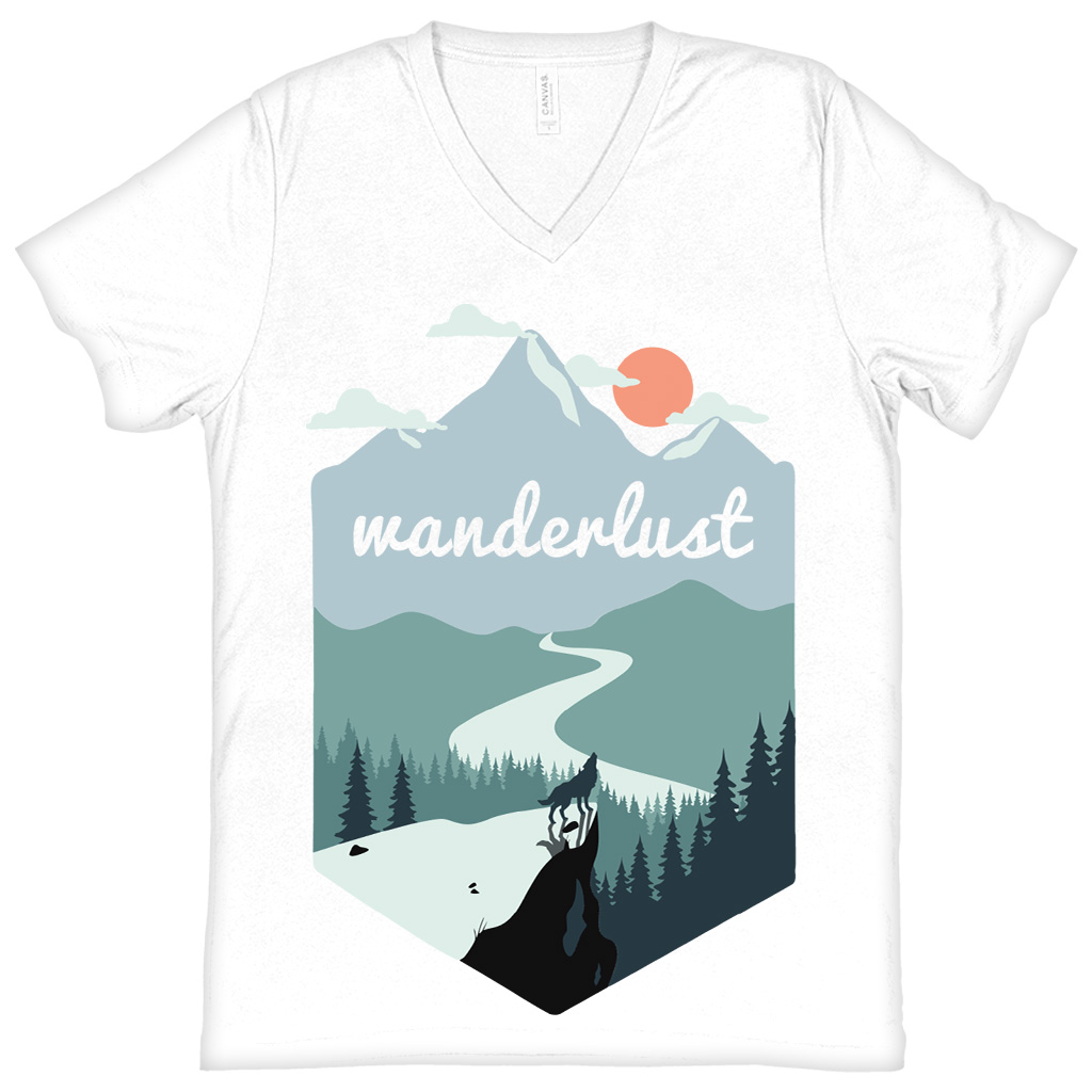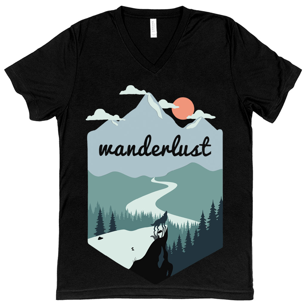 Wanderlust V-Neck T-Shirt – Outdoorsy Basic T-Shirt – Mountains Tee